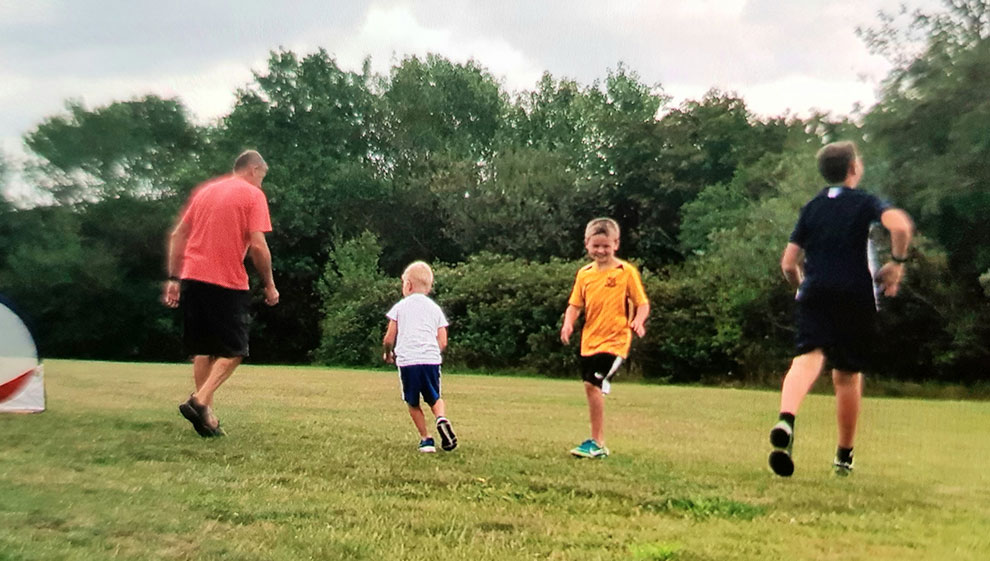 Back to playing football with his grandsons