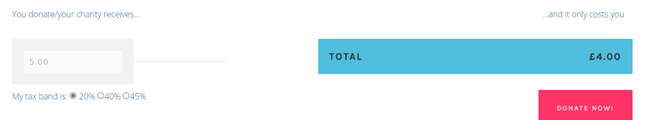 The donation is deducted from your gross pay each month before income tax, meaning the charity receives what you would have paid in tax as part of the gift. To work out how much your donation will cost you, please visit the online payroll calculator here.